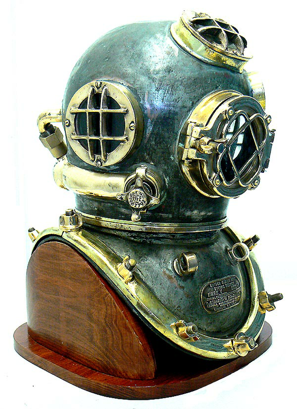A large selection of Deep Sea and shallow water Diving Helmets, presented in a photo catalog